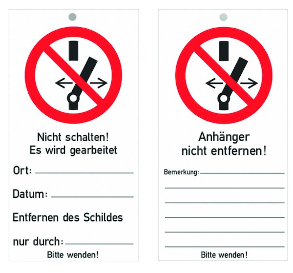 Wartungsanhänger aus PVC-Kunststoff Zur Warnung an Maschinen, Geräten und Betriebsmitteln Gekennzeichnet mit Symbol 'Nicht schalten' nach DIN 40008 Mit Kabelbinder zu befestigen Beschreibbar mit PKMP Kabelmarker Maße: 147 x 76 mm| Hersteller / Marke | PROTEC.CLASS |