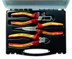 Zangenset bestehend aus:PVDE-S2 Seitenschneider 160 mmPVDE-A1 Abisolierzange 160 mmPVDE-T1 Radio-Telefonzange 200 mm gerade