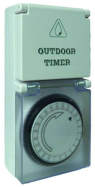 Mechanische Steckdosen-Zeitschaltuhr Für Außen- und Feuchtraumbereich Mit Kinderschutz Spritzwassergeschützt Anzahl Kanäle: 1 Mit 24-Std.-Segment-Schaltscheibe Anzahl Programme: 96 x 15-min-Reiter Standby Leistung: 1 W Umgebungstemperatur: -40°C bis +55°C Maße: 150 x 74 x 85 mm Farbe: weiß Max. Belastung: 3.500 W - 16(2)A