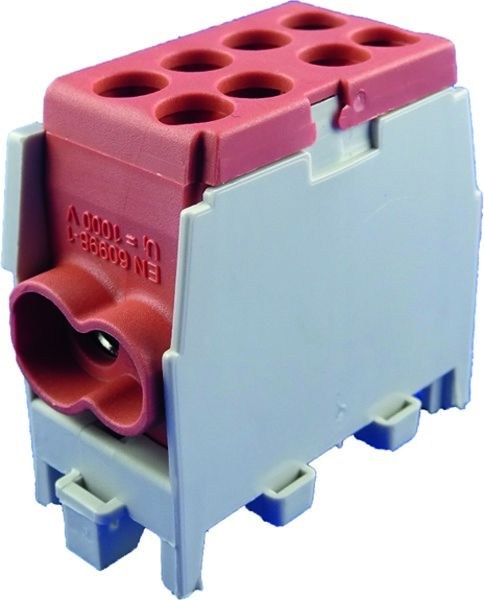 25/16 mm²Anreihbar Montage auf 35 mm Tragschiene gem. EN 50022 / EN 60715 Z.B. für Installations-Kleinverteiler und Zählerplätze gem. VDE 0603 Installationskleinverteiler und Zählerplätze AC 400V Hauptleitungsabzweigklemmen VDE 0603-2, Verbindungsmaterial für Niederspannungs-Stromkreise für Haushalt und ähnliche Zwecke VDE 0613, Teil 1 / EN 60998-1 Farbcodierung entsprechend gültigen Aderfarben Montage horizontal oder vertikal Spannung: 1000 V VDE zertifiziert Für massive Aluminiumleiter geeignet Eingänge max. 25 mm²: 2 Ausgänge max. 16 mm²: 2 Klemmkörper: Messing, (verzinnt) Klemmschrauben: Stahl, verzinkt Isoliergehäuse: Kunststoff, (Polyamid) schlagzäh, flammgeschützt, halogenfrei Hauptleitung 1,5 - 25 mm² starr/mehrdrähtig, 2,5 Nm Abzweigeleitung: 1,5 - 16 mm² starr/mehrdrähtig, 2 Nm Abisolierlänge 16 mm Buchsenklemme mit je 2 Schrauben pro Klemmstelle Schrauben mit Kombischlitz Pozidriv Z2 IP 20, fingersicher Ecken gerundet