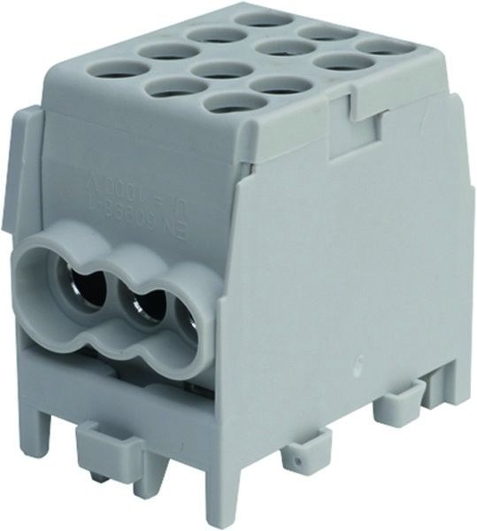 25/16 mm² Anreihbar Montage auf 35 mm Tragschiene gem. EN 50022 / EN 60715 Z.B. für Installations-Kleinverteiler und Zählerplätze gem. VDE 0603 Installationskleinverteiler und Zählerplätze AC 400V Hauptleitungsabzweigklemmen VDE 0603-2, Verbindungsmaterial für Niederspannungs-Stromkreise für Haushalt und ähnliche Zwecke VDE 0613, Teil 1 / EN 60998-1 Farbcodierung entsprechend gültigen Aderfarben Spannung: 1000 V VDE zertifiziert Für massive Aluminiumleiter geeignet Eingänge max. 25 mm²: 2 Ausgänge max. 16 mm²: 4 Klemmkörper: Messing, (verzinnt) Klemmschrauben: Stahl, verzinkt Isoliergehäuse: Kunststoff, (Polyamid) schlagzäh, flammgeschützt, halogenfrei Hauptleitung 1,5 - 25 mm² starr/mehrdrähtig, 2,5 Nm Abzweigeleitung: 1,5 - 16 mm² starr/mehrdrähtig, 2 Nm Abisolierlänge 16 mm Buchsenklemme mit je 2 Schrauben pro Klemmstelle Schrauben mit Kombischlitz Pozidriv Z2 IP 20, fingersicher Ecken gerundet