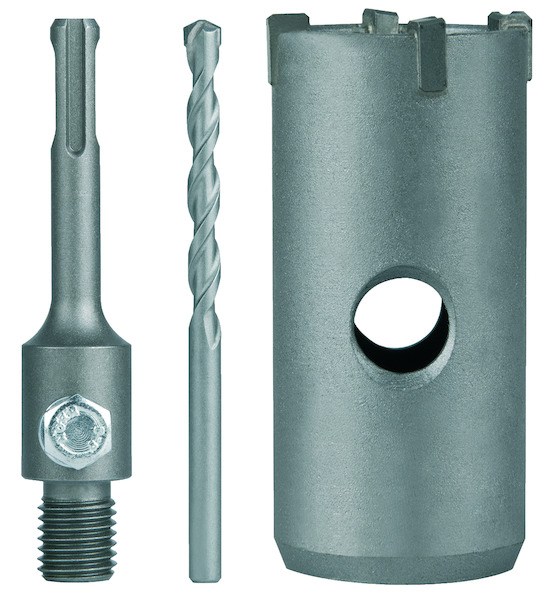 Set bestehend aus:• 1 x PSBK82 Hammerfeste Schlagbohrkrone mit Hartmetallschneiden (Art.-NR. 05105757, ID-Nr. 056368)- Bohr-Ø: 82 mm - Aufnahme: Gewinde M16- Für Beton, Stein, Mauerwerk und Ziegel- Ideal zum Versenken von Schalterdosen- Hoher Leistungsgrad durch sehr stabilen und dünnwandigen Bohrkronenkörper - Erforderliche Maschinenleistung: bis Ø 50,0 mm min. 600 Watt, ab Ø 65,0 mm min. 800 Watt • 1 x PASSDS SDS-Plus-Schaft für Schlagbohrkronen (Art.-NR. 05105731, ID-Nr. 056362)- Gesamtlänge: 110 mm- Schnittrichtung: rechtsschneidend• 1 x PZB9 Zentrierbohrer mit Hartmetallschneiden (Art.-NR. 05105732, ID-Nr. 056363)- Bohr-Ø: 8 mm- Gesamtlänge: 110 mm- Zylinderschaft- Schnittrichtung: rechtsschneidend