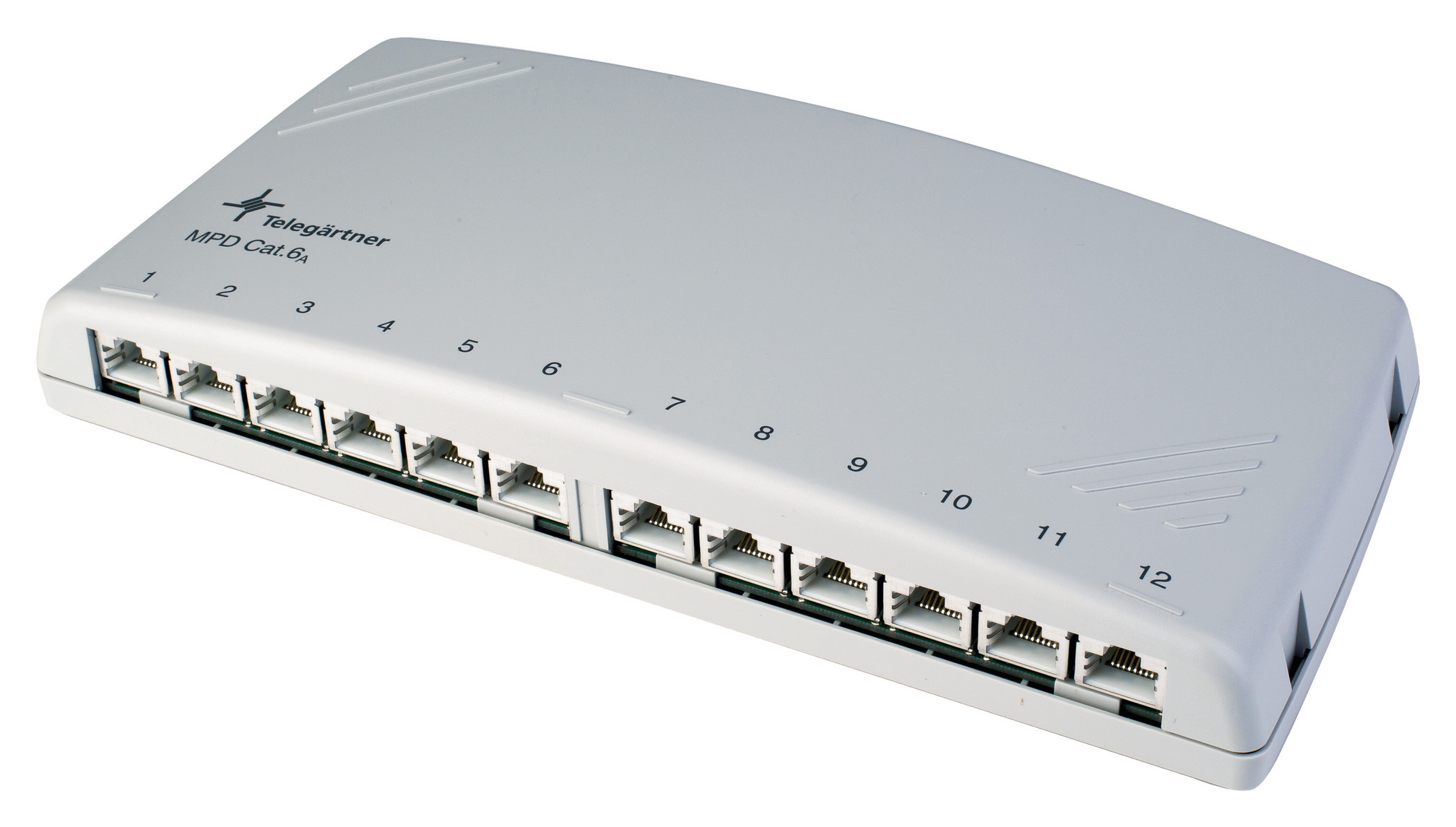 Kleine Netze benötigen nicht zwingend 19“-Schränke oder große Wandverteiler. Einfache, kostengünstige Verteiler sind gefragt, die dezent und unauffällig installiert werden können. Das kompakte Verteiler-Gehäuse kann auf der Wand, unter dem Schreibtisch, im Mobiliar und durch den integrierten Adapter auch auf Tragschienen TH35 nach DIN EN 60715 montiert werden. Der MPD12-Mini-Verteiler in LSA Ausführung der Kategorie 6A - mit Komponenten-Zertifikat gemäß ISO/IEC 11801- ist für höchste Übertragungsraten bis einschließlich 10 Gbit/s verfügbar. Die RJ45-Buchsen sind für min. 750 Steckzyklen mit RJ45/RJ11/RJ12-Stecker ausgelegt und ebenso für Anwendungen wie PoE+ gemäß IEEE 802.3at geeignet.Leistungsmerkmale:360 Grad Schirmkontaktierung (geschirmte Ausführung) direkt auf der Leiterplatte durch Klemmschelle ohne zusätzliches Verdrillen des Abschirmgeflechts,Abschirmhaube aus rostfreien Stahl,Anschluss der Adern über LSA Plus-Schneidklemmen mit Farbkennzeichnung nach EIA/TIA 568A und B,Anschlussfreundlich bei Einhaltung der aufgedrillten Strecke bei den Anschlussdrähten auf max. 13 mm,Cat.6A (ISO/IEC)- & Cat.6A-Ausführungen mit Kontaktüberbiegeschutz: geeignet für 6- (RJ11/12) und 8-polige Stecker (RJ45); können ohne zusätzlichen Montageaufwand wechselweise in den MJ-Buchsen verwendet werden,Einschubausführungen 3 HE/7 TE mit 6xRJ45 und 3 HE/10 TE mit 12xRJ45, Frontplatte Alu eloxiert,Gehäuse aus Thermoplast, halogenfrei, mit Anti-Rutsch-Füßen,Kabelzugentlastung durch beiliegende Kabelbinder ohne Schrauben und Spezialwerkzeuge,Leiterplatte horizontal montiert, geschirmte Ausführungen sind mit einem innenliegenden Metall-Abschirmgehäuse versehen. Zusätzlich kann auf der Leiterplatte ein PE-Kabel (mit Schraube M4) befestigt werden,Mini-Verteiler MPD6, MPD8 MPD12 mit 6, 8 oder 12 Anschlussbuchsen RJ45 auf einer gemeinsamen Leiterplatte,Mini-Verteiler MPD8 AMJ/UMJ und MPD12 AMJ/UMJ für 8 bzw. 12 AM-S/AMJ/UMJ-Module und Kupplungen,Werkzeuglose Befestigung der Abschirmhaube (geschirmte Ausführung)Ausführung: geschirmtFarbe: lichtgrau RAL 7035Kurzbezeichnung: MPD12-HS K Cat.6A (ISO/IEC)