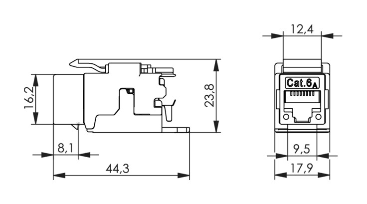 Das vollgeschirmte AMJ-Modul K Cat.6A (ISO/IEC) für 10 Gigabit Ethernet besitzt die herausragenden übertragungstechnischen Eigenschaften, die Sie zu Recht von Telegärtner erwarten. Die Produktion des Cat.6A (ISO/IEC)-Kerns und der IDC-Schneidklemmen auf einer vollautomatischen Produktionsanlage garantieren Ihnen ein hervorragendes Preis-/Leistungsverhältnis, verbunden mit einer Qualitätskontrolle innerhalb der Fertigungslinie, die Maßstäbe setzt. Mit den Abmessungen von 19,3 x 14,7 mm passt das Modul in die Montageausschnitte einer Vielzahl weltweit verfügbarer Zentralplatten und 19 Zoll Patch Panel-Lösungen. Die von Telegärtner entwickelte IDC-Schneidklemme garantiert zuverlässige Kontaktierungen bei Leiterquerschnitten von AWG22/1 bei festen bis AWG27/7 bei flexiblen Leitern. Damit empfiehlt sich das AMJ-Modul K Cat.6A (ISO/IEC) auch für den Anschluss von Patchkabeln AWG24/7, AWG26/7 oder AWG27/7 an der IDC-Schneidklemme für einen Sammelpunkt (Consolidation Point).Leistungsmerkmale:10 Gigabit-Ethernet-konform (IEEE 802.3an),Cat.6A (ISO/IEC) gemäß IEC 60603-7-51,geeignet für POE+ (Power over Ethernet Plus),Kontakt-Überbiegeschutz: ≥750 Steckzyklen mit RJ45/RJ11/RJ12-Steckern,Linkzertifizierung: Klasse EA (ISO/IEC) gemäß ISO/IEC 11801,Optisch überwachte Prüfung der RJ45-Kontakthöhen,Universelles, weltweit verfügbares Einbaumaß für Montageausschnitte 19,3 x 14,7 mm,Vollautomatisch produzierter real Cat.6A (ISO/IEC) RJ45-Kern für gleichbleibend hohen QualitätsstandardAnmerkungen: werkzeuglose Anschlusstechnik, geeignet für RJ45/11/12-SteckerKurzbezeichnung: AMJ-Modul K Cat.6A (ISO/IEC) T568AEinbaumaß: Z121