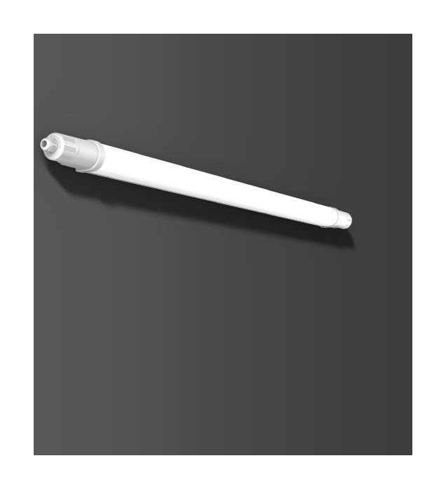 Feuchtraumanbauleuchte. Seitenteile Kunststoff (Polycarbonat) weiß. Diffusor Kunststoff (Polycarbonat) opal. Lichtverteilung symmetrisch. Homogene Ausleuchtung. Deckenmontagebügel aus Edelstahl und Triangel-Bügel für Pendelmontage im Lieferumfang enthalten. Betriebsgerät gekapselt, integriert und fest verbunden mit dem Diffusor und Seitenteil. Komfortable Leitungseinführung über Kabelverschraubungen. Einfache Installation durch Drehverschluss auf beiden Seiten. Leuchte mit integrierter 3-poliger Durchgangsverdrahtung für das Aneinanderreihen von weiteren Leuchten. MultiLumen-Funktion: Einstellbarkeit des Leuchtenlichtstroms in 2 Stufen. Werkseitig auf H (High - hoher Lichtstrom) voreingestellt. Leuchten mit begrenzter Oberflächentemperatur nach DIN EN 60598-2-24 zur Verwendung in einer Umgebung, in der eine Ablagerung von leitfähigem Staub auf der Leuchte erwartet werden kann.