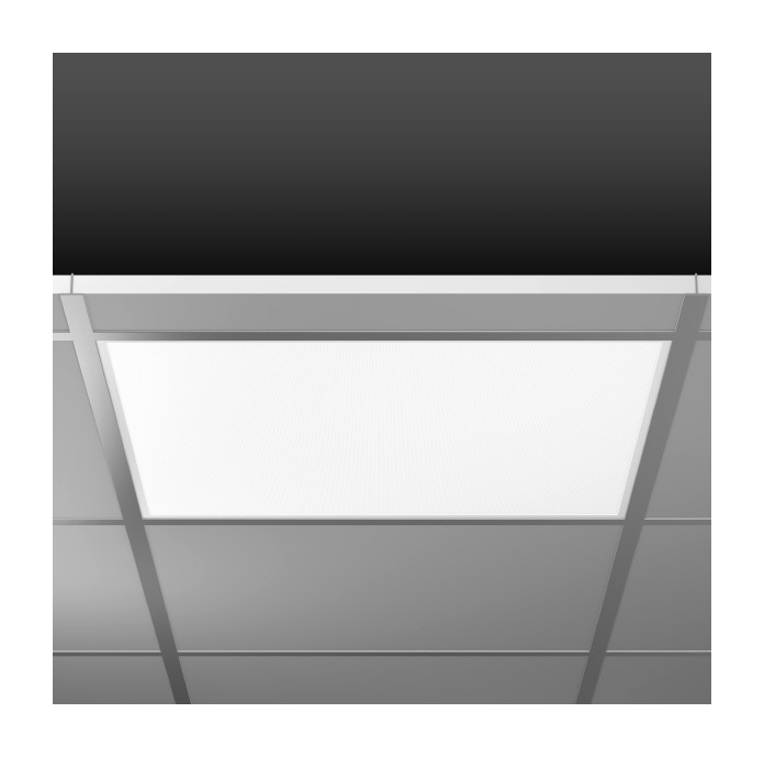 Einlegeleuchte für Deckensysteme mit sichtbaren Tragschienen. Gehäuse Stahlblech pulverbeschichtet. Leuchtenrahmen Aluminium pulverbeschichtet. Diffusor aus vergilbungsfreiem Kunststoff (PMMA) mikroprismatisch. LED Backlight-Technologie für eine homogene Ausleuchtung der gesamten lichtabgebenden Fläche. Betriebsgerät extern. Hervorragend geeignet für Bürobereiche (UGR = 19) und Bildschirmarbeitsplätze (BAP) gem. DIN EN 12464-1.