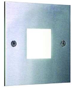 LED-Wandeinbauleuchte 230 V Orientierungsleuchte für Flüre, Treppenaufgänge ect. Aus Edelstahl, Oberfläche gebürstet. Lichtaustritt Acrylglas opal. Mit 1 W POWER-LED. Mit eingebautem LED-Betriebsgerät 230 V. Inklusive Hohlwandmontagedose Ø x ET: 68 x 65 mm, auch mit LED-Farbe blau, rot, orange und grün lieferbarBlende quadratisch 80 x 80 mm. Lichtfarbe 3.100 K.| Hersteller / Marke | BRUMBERG |