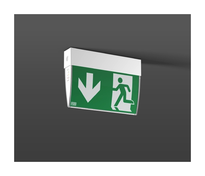 Universelle Kunststoffleuchte zur Rettungswegkennzeichnung. Gehäuse Kunststoff (Polycarbonat), schlagzäh. Vier Piktogrammfolien und eine weiße Folie zum Einlegen in die transparente Abdeckung beigelegt. Befestigungswinkel zur Wandmontage und zwei Dichtschrauben beigepackt. Einzelbatteriesystem mit automatischem Selbsttest.