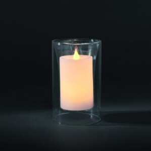 LED-Echtwachskerze im Glas mit Lichtsensor, 2 warm-weiße LEDs, Batteriebetrieb 2x AA1,5 V (nicht im Lieferumfang), Ø: 11 cm, H: 18,5 cm| Hersteller / Marke | KONSTSMIDE |