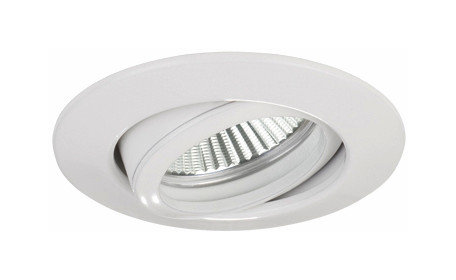 LED-Einbaustrahler 230V,6,6W,2700K,ws LED-Einbaustrahler rund, schwenkbar 25°, ohne Sprengring, Material: Guss, bestückt mit 1 x Hochleistungs-LED für den Einsatz im Bereich der Allgemein- oder Akzentbeleuchtung, Montage in Hohldecken mit Federbefestigung, inkl. Konverter für 230 V-Netzspannung (Maße Konverter L 68 x B 35 x H 21 mm), LED Lichtquelle nach unten abstrahlend, mit Aluminium-Facetten-Reflektor, Abstrahlwinkel 38°. Nicht zur Abdeckung mit Wärmedämm-Material geeignete Leuchte. Diese Leuchte enthält eingebaute LED-Lampen. Die Lampen können in der Leuchte nicht ausgetauscht werden. Energieeffizienzklasse A++ bis A.
