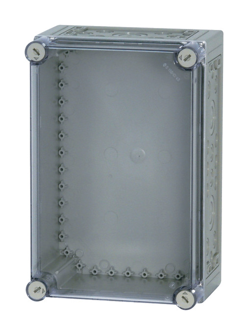 Einzel-Leergehäuse, Material Polycarbonat, schlagfest, Schutzart IP65, patentierter Deckelverschluss mit integriertem Überdruckausgleich, mit metrischen Vorprägungen in allen Seitenwänden, Leitungseinführungen oben und unten jeweils=2xM50/32 und 6xM25/16 und 8xM20, seitlich jeweils=1xM50/32 und 6xM25/16, Befestigungslaschen für Wandbefestigung, plombierbare Deckelverschlüsse, Seitenwände ausschlagbar, als Verteilergehäuse umbaubar durch ausschlagen der Seitenwände, RAL 7035, grau (Unterkasten), durchsichtig rauchgrau, (Deckel), Einbautiefe bei Montageplatte=150mm, Ausführung Deckel: durchsichtig rauchgrau, Ausführung Unterteil: vorgeprägt, Deckel optional nachrüstbar mit Zylinderschloss DVZ...-CI| Manufacturer / Brand | EATON |