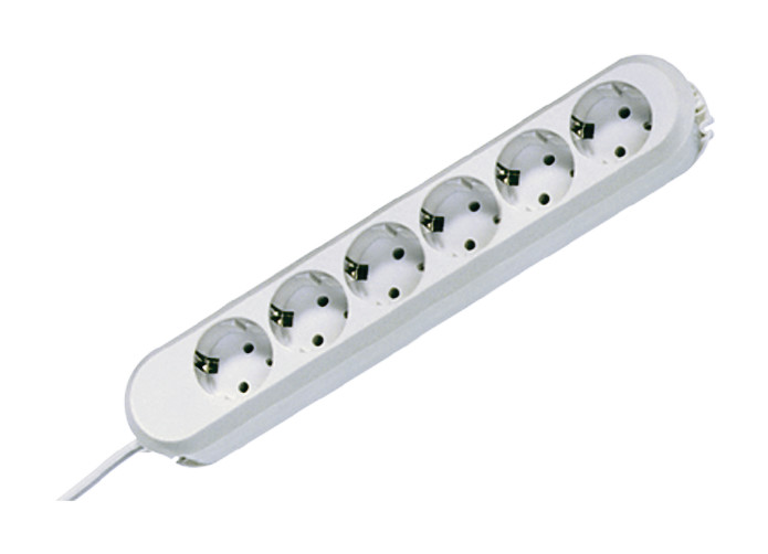Tischsteckdose SMART 6fach weiß ohne Schalter, öffenbar, mit erhöhtem Berührungsschutz 1,5m H05VV-F 3G1,5mm² Schutzkontaktstecker geschraubt, im Polybeutel mit Header