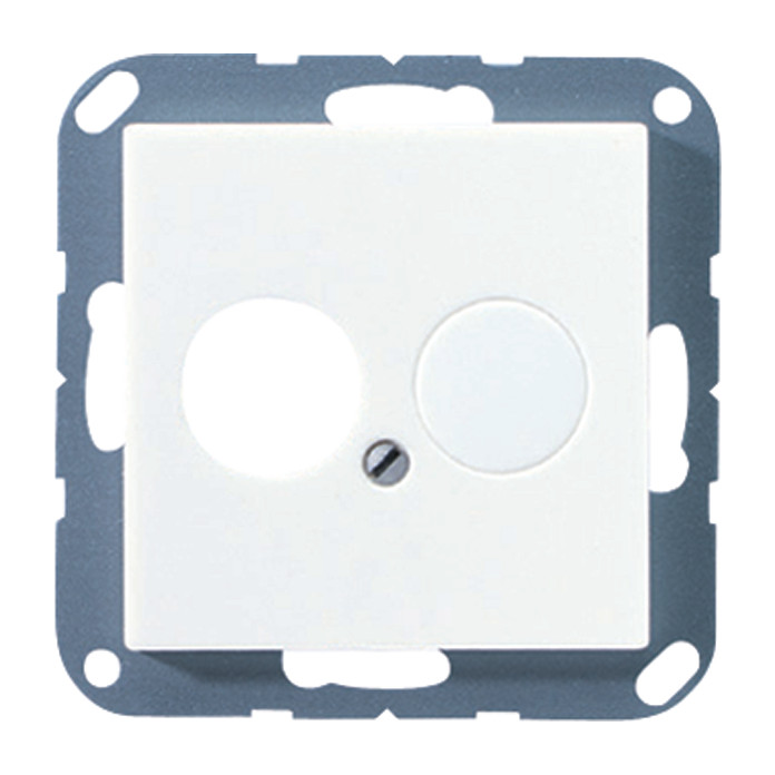Abdeckung, mit Tragring, Schraubbefestigung, für 2 Kleinsteckdosen (Lautsprecherbuchsen), 1 Eingang geöffnet| Manufacturer / Brand | JUNG |