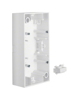 Aufputz-Gehäuse 2fach S.1 polarweiß, matt. Aufputz-Gehäuse für senkrechte und waagerechte Montage, mit Leitungs-/Kanaleinführung oben/unten, Boden geschlossen, zur Aufputz-Installation, zur Montage auf entflammbarem Untergrund, zur Verwendung von Abdeckungen und Unterputz Einsätze. Aufputz-Gehäuse 2fach S.1 polarweiß, matt. Aufputz-Gehäuse für senkrechte und waagerechte Montage, mit Leitungs- und Kanaleinführung. Mit dem Aufputz-Gehäuse können Unterputz-Apparate zur Aufputz-Installation verwendet werden (Boden geschlossen). Standardprogramm, 2-fach. Material: Kunststoff, Thermoplast, bruchsicher, halogenfrei.