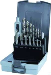 15-teilig Hochwertiger HSS (DMO5) - Stahl Härte am Schneideteil = bis d1 = 3,0 mm min. 61 HRC; 3,0 bis 6,0 mm mindestens 62 HRC; über 6,0 mm 63 HRC / Härte am Schaft min. 45 HRC Gewinde: Metrisch DIN ISO 13 Schnittrichtung: Rechtsschneidend In schlag- und bruchfester ABS-Box Inhalt:Gewinde-Nennmaß - Steigung mm - Gewinde-Kernloch - Gesamtlänge - Gewindelänge:M 3 - 0,50 - 2,50 - 40 - 10M 4 - 0,70 - 3,30 - 45 - 12M 5 - 0,80 - 4,20 - 50 - 13M 6 - 1,00 - 5,00 - 50 - 15M 8 - 1,25 - 6,80 - 56 - 18M 10 - 1,50 - 8,50 - 70 - 24M 12 - 1,75 - 10,20 - 75 - 29