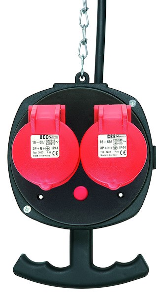 Hängeverteiler mit 3 x Schuko und 2 x CEE Gehäuse aus Spezialkunststoff mit Handgriff /Werkzeughaken Inklusive 3 m stabiler Stahl-Gliederkette Auf gewünschte Arbeitshöhe abhängbar Technische Daten: 16A - 230V/400V max. 10 kW Eingang: 3 m H07RN-F 5G1,5 mit CEE-Stecker 400 V / 16 A, 5-polig, IP44 Ausgang: 3 x Schutzkontaktsteckdosen 16A, 230V mit Sicherheitsklappdeckeln, IP44 und 2 x CEE-Steckdosen 400 V / 16 A, 5-polig, IP44. Entspricht den Richtlinien nach: DIN VDE 0620-, DIN EN 60309-1, DIN EN 50525-2-21 Gewicht: ca. 1,9 kg| Manufacturer / Brand | PROTEC.CLASS |