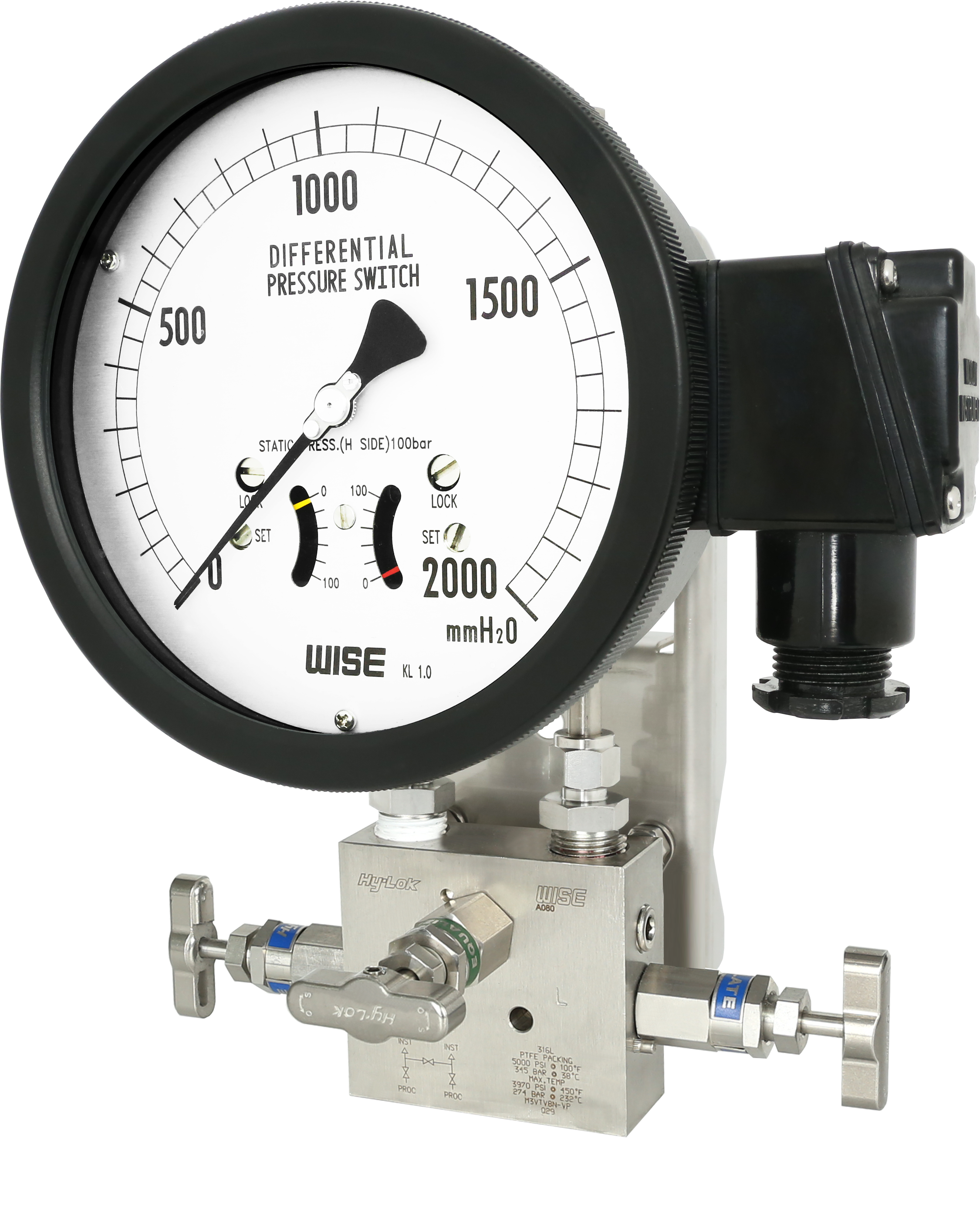 The P640 series are designed to measure differential pressure from 25 kPa to 2.0 MPa at static pressure 10 MPa and have electrical contact. A set of two stainless steel bellows mounted on a force balance allows direct reading of the actual differential pressure.