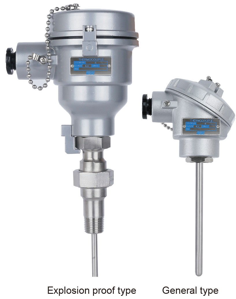 Sheath type thermocouple generally shares the similar principle of protection tube type thermocouple. However, it has a different construction. It is filled with inorganic insulating material between the thin wire and the metal sheath, and it shares the same body as one. Inside the thin stainless steel pipe, thermocouple element is located, and then stainless pipe is filled with a MgO. Normally, thermocouple is used with a thermowell. The advantages over protection tube types are it has a faster response time, it has a broader temperature range (-200 ~ 1,600 ℃), longer life, it can be bended to install according to its required installation site condition, a better mechanical strength, and a better internal pressure control.