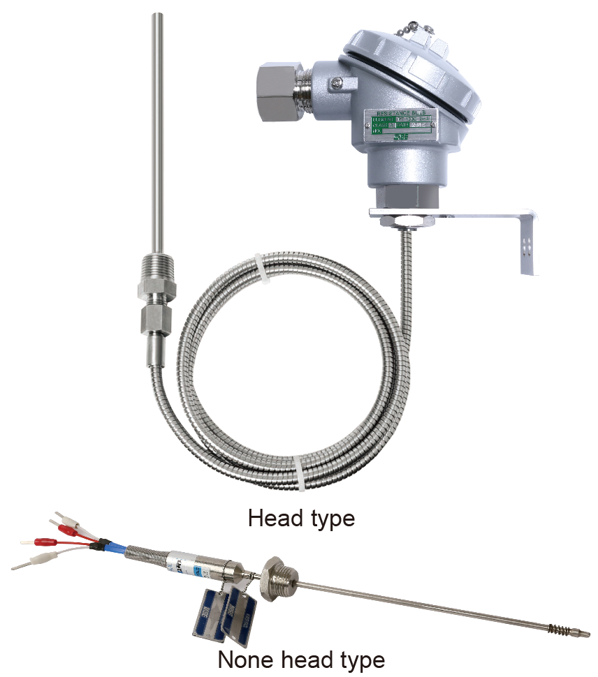 This type of detector does not use terminal head, rather it directly connects to an indicator or a transmitter. It is very useful where the distance between measuring parts and the location of its head is too far. The measuring parts and its head can be connected by using an extension wire. Extension wire can be selected according to its installation site condition, its protection shape of armored tube, and its wire covering material.
